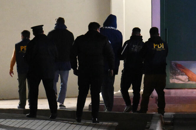 Les rugbymen Hugo Auradou et Oscar Jegou,encadrés par des policiers argentins,à leur arrivée au centre de détention de Mendoza (Argentine),le 11 juillet 2024. LUIS ROBAYO / AFP Hugo Auradou et Oscar Jegou ont passé leur deuxième nuit au centre de détention transitoire du pôle juridique de Mendoza,en Argentine,du vendredi 12 au samedi 13 juillet. Niché au pied de la cordillère des Andes,ce complexe ultramoderne regroupe d’anciens centres de détention et de plus récents,et les bâtiments flambant neuf du tribunal pénal et du ministère public.