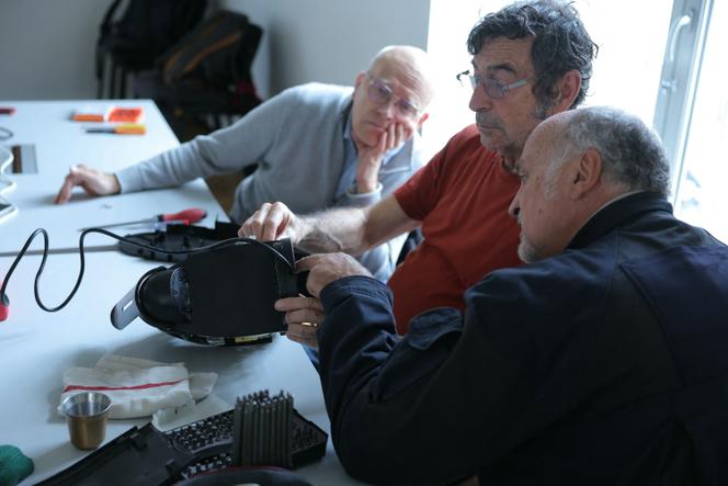 Sur la grande table repose le téléphone de Sam,éventré pour le bien de l’opération. « Un écran cassé »,précise Samuel,penché sur l’appareil. Bénévole depuis six ans,l’informaticientravaille sur le smartphone depuisbientôt une heure : « Il n’y a plus de vis à l’extérieur,les fabricants collent tout,maintenant. Il faut le chauffer pour l’ouvrir,et ensuite tout recoller. Ça nous prend un temps fou. » Au même moment,Pierre,réparateur depuis 2015,range un sèche-cheveux dans une caisse à outils.