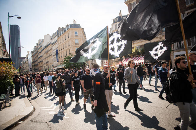 Des membres du GUD présents lors du rassemblement annuel,à l’appel du comité du 9-Mai,de plusieurs centaines de militants de l’ultradroite,en mémoire de Sébastien Deyzieu,décédé accidentellement en 1994,à Paris,le 11 mai 2024. BENJAMIN GIRETTE POUR « LE MONDE » Une nouvelle dissolution ? Invité par BFM-TV,mercredi 19 juin,le ministre de l’intérieur,Gérald Darmanin,a annoncé son intention de « proposer très bientôt » au président de la République de dissoudre au conseil des ministres le Groupe Union Défense (GUD),un groupuscule étudiant d’extrême droite régulièrement mis en cause pour ses actions et ses prises de position xénophobes. Davantage qu’un sigle,le GUD représente une véritable matrice historique de la contestation étudiante d’extrême droite,régulièrement mis en sommeil,puis réactivé.