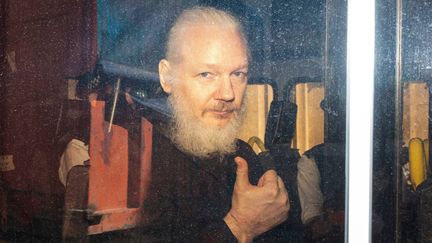 Julian Assange après son arrestation à Londres (Royaume-Uni),le 11 avril 2019. (ROB PINNEY / LNP / REX / SHUTTERSTOCK / SIPA)