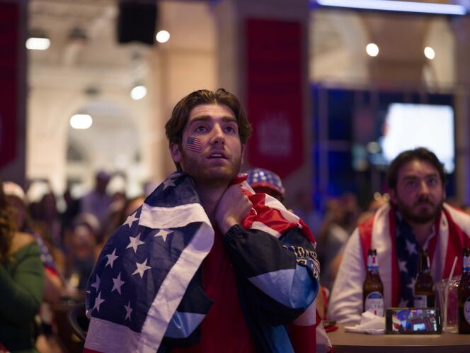 Un supporteur attend le résultat de la course du 100 m,dans la « Team USA House »,au Palais Brongniart,à Paris,le 4 août 2024. TERENCE BIKOUMOU POUR « LE MONDE » Ceci est une question : comment appeler un important homme d’affaires à moustache,tout habillé en orange,depuis les baskets jusqu’au chapeau melon fantaisie,qui chante et tape dans les mains devant le château de Versailles sous un soleil en fusion ? Réponse : un supporteur des Pays-Bas. Ici,à vrai dire,ça ne surprend personne,la scène paraît même normale par temps de Jeux olympiques (JO). L’homme en question est escorté d’une troupe de ses compatriotes,également en orange,la couleur nationale néerlandaise.