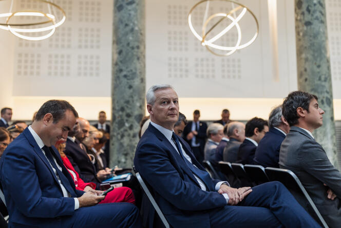 Bruno Le Maire,ministre de l’économie,lors de la conférence de presse du président Emmanuel Macron,à Paris,le 12 juin 2024. LAURENCE GEAI /MYOP POUR « LE MONDE » L’exécutif,qui renvoie dos à dos l’extrême droite et l’extrême gauche,a sauté sur l’occasion. Le programme économique du Nouveau Front populaire alliant les gauches et rendu public vendredi 14 juin,est « un délire total »,a immédiatement prévenu le ministre de l’économie,Bruno Le Maire,sur Franceinfo,le même jour. « C’est 1981 puissance dix »,a-t-il assuré,brandissant le spectre du « retour du chômage de masse »,du « déclassement » et de la « sortie de l’Europe ». « Attendez-vous au pire ! »,a-t-il averti.