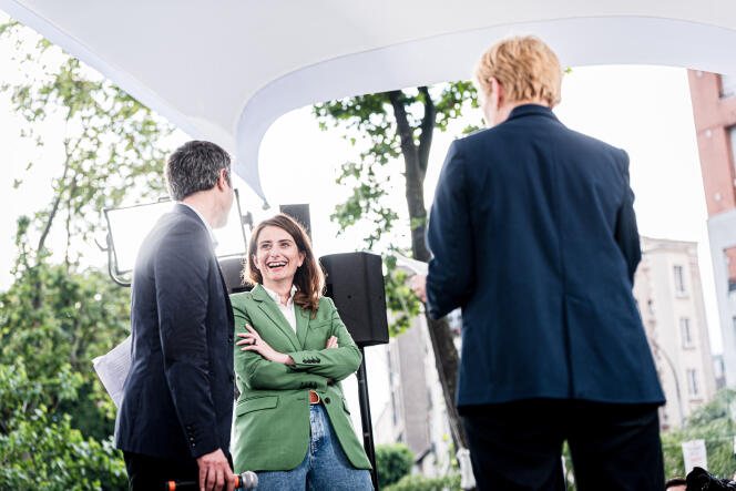 Marine Tondelier (au centre) discute avec François Ruffin,sur scène,tandis que Clémentine Autain prend la parole lors du premier meeting du Nouveau Front populaire,à Montreuil (Seine-Saint-Denis),le 17 juin 2024. JULIEN MUGUET POUR « LE MONDE » « Ce débat ne se fera pas »,a annoncé,mardi 2 juillet,le patron de BFM-TV,Marc-Olivier Fogiel. Le premier ministre,Gabriel Attal,le président du Rassemblement national (RN),Jordan Bardella,et la cheffe de file des Ecologistes,Marine Tondelier,devaient s’affronter,mercredi 3 juillet,sur le plateau de la chaîne d’informations en continu.