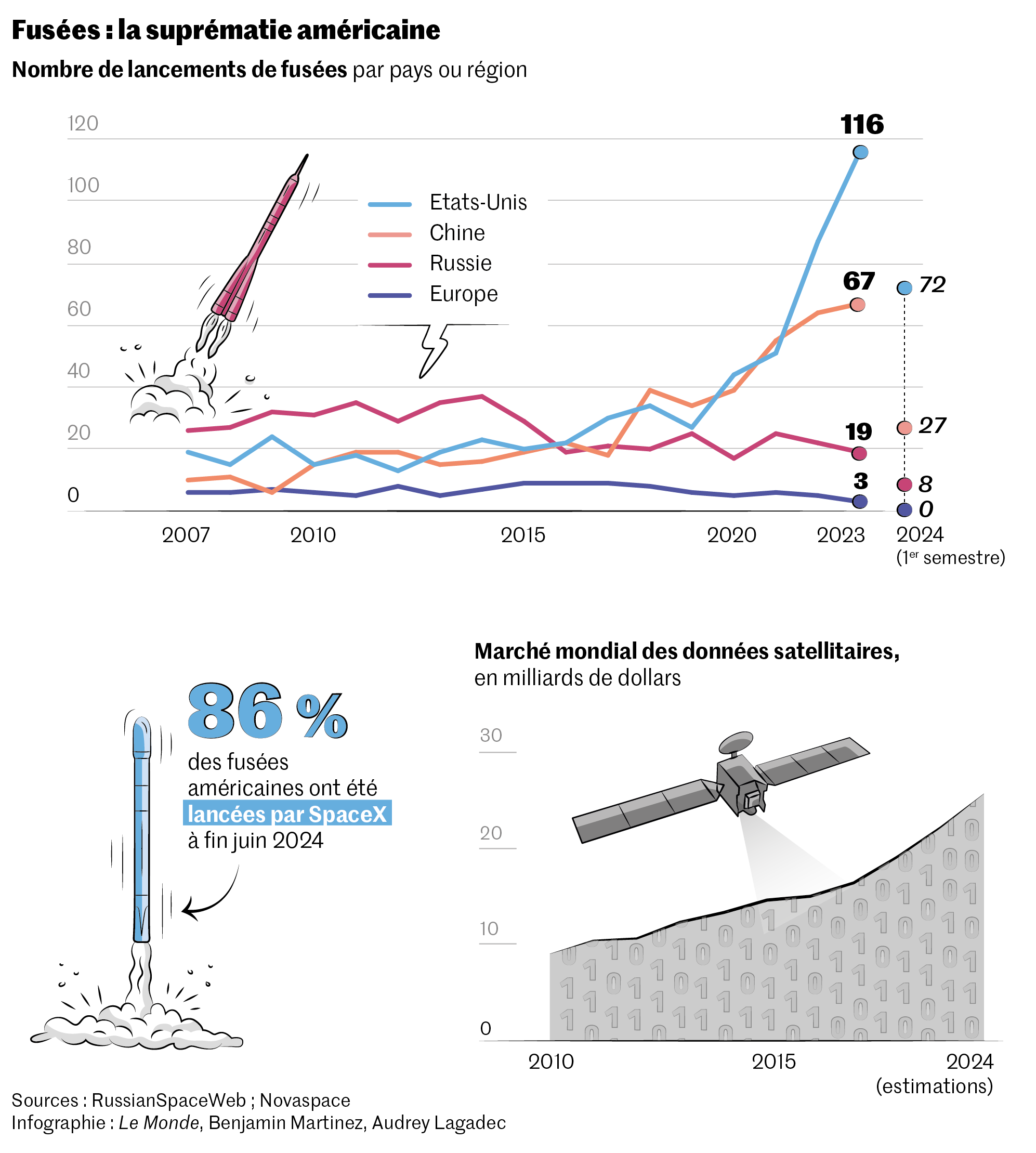 Dans moins d’une semaine,mardi 9 juillet,la première Ariane-6 décollera de Guyane. Il sera alors 15 heures à Kourou et 20 heures à Paris. Ce moment est attendu depuis dix ans,depuis que les Européens,en 2014,se sont rendu compte que SpaceX,la société d’Elon Musk,avec sa fusée Falcon-9,bouleversait les règles du secteur en cassant les prix des lancements. Il leur fallait réagir face à ce perturbateur pour ne pas être laminé.