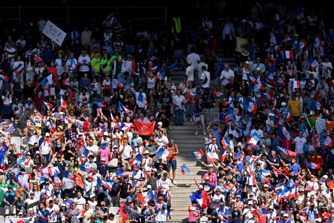 Des spectateurs assistent à l’épreuve d’athlétisme lors des Jeux olympiques de Paris 2024 au Stade de France à Saint-Denis (Seine-Saint-Denis),le 7 août 2024. ANTONIN THUILLIER / AFP Les Jeux olympiques et paralympiques (JOP) de Paris 2024 devaient être « populaires » et associer à la fête les habitants de la Seine-Saint-Denis,territoire hôte où se déroulent une partie des épreuves. Pour cela,un total de 180 000 places – 150 000 pour les épreuves et 30 000 pour la cérémonie d’ouverture – gratuites avait été prévu. « Cela représente un habitant sur dix »,évalue Stéphane Troussel,le président (Parti socialiste) du département,qui compte 1,6 million d’habitants.