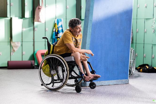 Adda Abdelli, acteur et coauteur de « Vestiaires »,programme court sur le handicap,ici dans un plan de la série. A.DEJONG Cocréateur de la série Vestiaires,diffusée tous les samedis sur France 2,Adda Abdelli raconte avec humour le quotidien d’une équipe de para natation. Lui-même atteint de poliomyélite,il revient sur son parcours à la télévision.