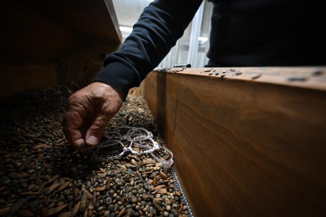 Des montures en acétate sont placées dans une machine à poncer,sur la ligne de production du lunetier français Thierry,à Morbier,dans le Jura,le 27 septembre 2022. SEBASTIEN BOZON / AFP Il se vend près de deux millions et demi de montures made in France chaque année,dont la moitié est exportée. La filière,qui emploie aujourd’hui quelque 1 500 salariés et compte une cinquantaine de marques,revient de loin : il y a trente ans,décimée par la concurrence asiatique,elle a vu fermer les trois quarts de ses ateliers. Ceux qui ont résisté sont toujours installés,pour la plupart,dans les vallées de Morez (Jura) et d’Oyonnax (Ain),berceaux historiques du savoir-faire lunetier tricolore,mais aussi,plus modestement,en Ile-de-France et dans la région nantaise.
