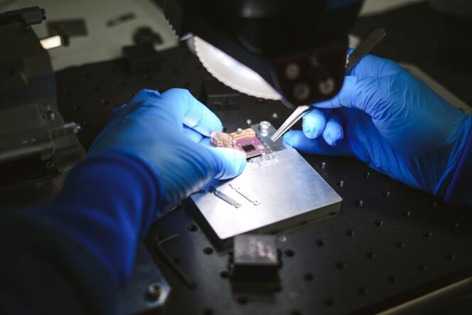 Dépôt de nanotubes de carbone sur une puce électronique afin de réaliser un qubit quantique,la spécialité de la start-up C12. SOPHIE DERRIEN/C12 En plein Paris,une usine d’un nouveau genre tourne à plein régime depuis quelques mois : une fabrique de bits quantiques. Ces curieux objets sont le cœur d’une rupture technologique explorée par les plus grandes entreprises de l’informatique (IBM,Google,Microsoft,Amazon…),qui cherchent à construire des calculateurs d’un nouveau genre,des ordinateurs quantiques. Ces derniers réaliseront des calculs infaisables aujourd’hui,pour casser des codes secrets,prédire les propriétés de matériaux,de médicaments,de catalyseurs… Ou simplement feront gagner du temps ou de l’énergie. La start-up C12 Quantum Electronics,créée en 2020,s’est elle aussi lancée sur ce créneau déjà occupé,rien qu’en France,par une poignée d’autres entreprises : Alice & Bob,Pasqal,Quandela ou Quobly.