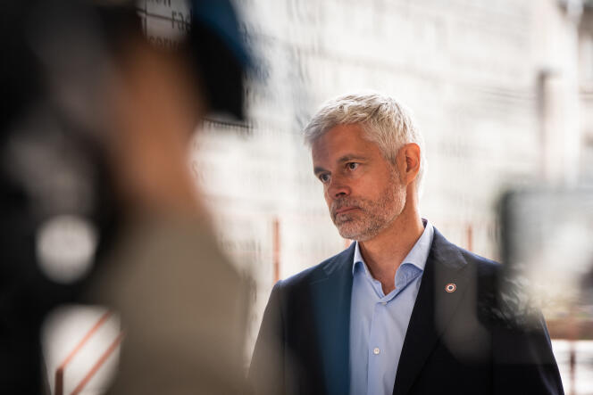 Laurent Wauquiez,président de la région Auvergne-Rhône-Alpes,annonce sa candidature aux élections législatives anticipées,à Saint-Etienne,le 1er mai 2024. VERO MARTIN / HANS LUCAS VIA AFP En partance de la présidence du conseil régional Auvergne-Rhône-Alpes,en raison de la règle du non-cumul des mandats,le nouveau député (Les Républicains,LR) de la 1re circonscription de la Haute‐Loire,Laurent Wauquiez,n’a pas encore été remplacé à la tête de la collectivité. L’élu fait face à de nouvelles accusations concernant sa gestion des deniers publics,après que le groupe d’opposition socialiste au conseil régional a émis,mardi 20 août,un signalement au Parquet national financier (PNF).