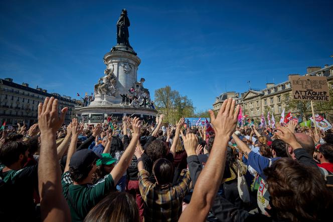 Lors d’un rassemblement contre l’extrême droite,organisé par La France insoumise et Les Ecologistes,place de la République,à Paris,le 6 avril 2025. KIRAN RIDLEY / AFP Un deuxième round,et moins de divisions ? Samedi 12 avril,c’est au tour de la société civile de gauche d’appeler à un rassemblement place de la République,à Paris. Une mobilisation pour défendre l’Etat de droit et l’institution judiciaire,ciblés par l’extrême droite et une partie de la droite depuis la condamnation de Marine Le Pen – pour laquelle elle a fait appel – à quatre ans de prison et cinq ans d’inéligibilité avec exécution provisoire pour détournement de fonds publics,le 31 mars.