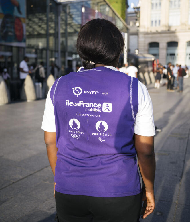 Positionnés aux embouchures de station,sur les quais de métro ou devant les points de vente automatisés,les agents de quai aux gilets violets – certains salariés de la RATP,d’autres recrutés par des sociétés prestataires – mobilisés durant cette période olympique ont contribué à fluidifier la circulation dans les transports en commun,là où beaucoup redoutaient le chaos.A porte de la Chapelle,ils indiquent comment trouver la station de tramway située à quelques mètres,cherchent les itinéraires des touristes sans connexion Internet. Il faut aussi veiller à la sécurité des passagers,comme lorsque Marcelle somme une famille danoise de s’arrêter dans sa course vers la rame alors que le signal de départ a déjà retenti.