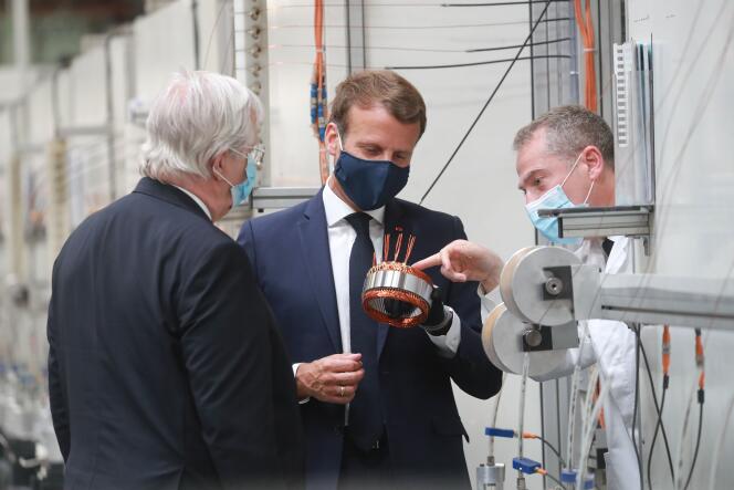 Le président Emmanuel Macron en visite chez l’équipementier automobile Valeo,à Etaples (Pas-de-Calais),le 26 mai 2020. LUDOVIC MARIN / AFP France et Allemagne partagent,peu ou prou,les mêmes stratégies nationales bas carbone. La première vise la neutralité en matière d’émission de gaz à effet de serre en 2050,la seconde en 2045. Le secteur industriel pesant à lui seul 21 % des émissions dans l’Union européenne,il est pertinent de comparer les performances de ces deux pays voisins,acteurs économiques majeurs sur le continent. C’est le travail qu’a mené La Fabrique de l’industrie,un think tank proche du patronat français,en collaboration avec le cabinet McKinsey. Dans une étude réalisée par l’économiste David Lolo et rendue publique jeudi 5 septembre,le cercle de réflexion se demande si la France industrielle est plus verte ou pas que son homologue allemande.