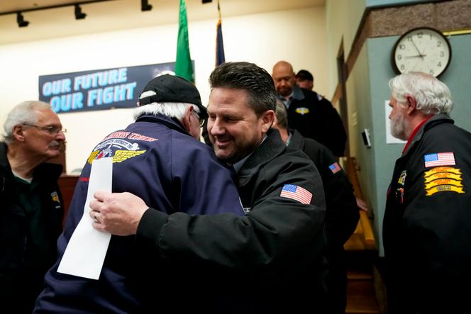 Le président de l’IAM District 751,la branche locale du Syndicat des machinistes,Jon Holden (au centre),salue les membres de son organisation après l’annonce du vote en faveur d’une nouvelle offre de contrat de Boeing,à Seattle (Etat de Washington),le 4 novembre 2024. LINDSEY WASSON/AP Il aura fallu plus de sept semaines de grève pour parvenir à un accord et mettre un terme à un conflit géant par sa durée et son coût. Les 33 000 ouvriers des deux usines historiques de Boeing autour de Seattle (Etat de Washington) ont voté,lundi 4 novembre,en faveur de l’accord proposé par leur organisation,l’IAM District 751,la branche locale du Syndicat des machinistes (IAM).
