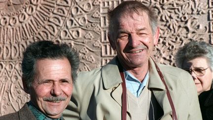 Gabriel Thiennot (à gauche) et Raymond Mis (à droite),le 16 décembre 1988. (JEAN-MARIE HURON / AFP)