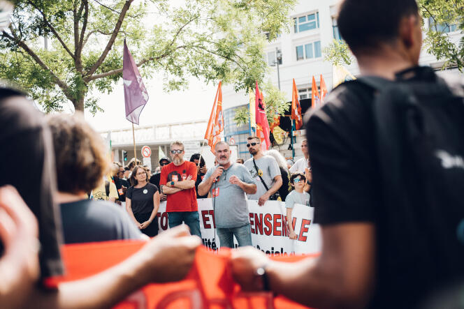 Olivier Mateu,secrétaire de la CGT Bouches-du-Rhône,lors de la manifestation contre l’extrême droite,à Marseille,le 15 juin 2024. THéO GIACOMETTI POUR « LE MONDE » Il y a ceux qui roulent ostensiblement à gauche,ceux qui disent « tout sauf l’extrême droite » et ceux qui s’abstiennent de tracer une orientation. La campagne des élections législatives a remis en lumière la diversité des cultures syndicales face à la vie politique. Alors que le Rassemblement national (RN) devrait continuer dans la même dynamique que les élections européennes,où il était arrivé en tête,les huit principales organisations de salariés oscillent entre le désir de faire avancer leurs revendications,la crainte de reculs démocratiques et le refus d’être instrumentalisées. Le chemin de crête est étroit,car elles peuvent se voir reprocher d’être trop engagées ou,au contraire,excessivement timorées dans un moment où des fondements de nos institutions sont susceptibles d’être remis en cause.