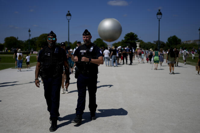 Une patrouille de police,au jardin des Tuileries,pendant les Jeux de Paris 2024,le 6 août 2024. NATACHA PISARENKO / AP Cette pizzeria du 5e arrondissement « offre une boisson,un dessert et même le café,très bon et très bon accueil ». « Boisson et dessert offerts pour les collègues »,se félicite un policier dans cet autre avis laissé sur une sandwicherie du quartier du Marais dans le 4e arrondissement de Paris. Sur le site Internet Flicadvisor,mis en ligne par le syndicat de policiers Un1té,les agents en « renfort Jeux olympiques » dans la région parisienne échangent tuyaux,bons plans,tables accueillantes ou,pour certains,simple description des menus.