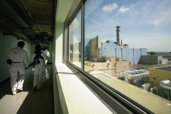 Dans un couloir de l’usine de retraitement Orano de la Hague,dans le nord-ouest de la France,le 29 août 2024. LOU BENOIST / AFP Plantée au nord-ouest de la pointe du Cotentin,l’usine de retraitement de La Hague (Manche),propriété du groupe Orano,s’étend sur près de 300 hectares. Le site ultrasécurisé de stockage et de recyclage de déchets nucléaires,encerclé de barbelés,avec une vue imprenable sur la mer,doit encore s’agrandir pour absorber une hausse d’activité prévue dans les prochaines années. Les jours de beau temps,on peut apercevoir depuis ses hauteurs le dôme du futur réacteur EPR de Flamanville,construit à une vingtaine de kilomètres de l’autre côté de l’anse de Vauville. Un paysage qui témoigne à lui seul de l’empreinte industrielle de ce territoire normand.