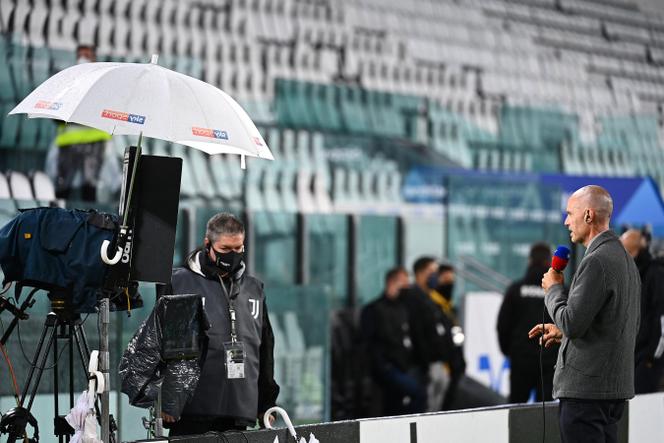 Un journaliste de la chaîne Sky Sports,lors du match de football entre la Juventus et le Napoli,à Turin,en Italie,le 4 octobre 2020. VINCENZO PINTO / AFP L’opération a été baptisée « Taken Down ». Fin novembre,un vaste coup de filet mené à l’échelle européenne a permis d’interpeller 102 personnes et de saisir plus de 2 500 chaînes et serveurs illégaux diffusant du streaming pirate. Si des arrestations ont eu lieu aux Pays-Bas,en Croatie ou au Royaume-Uni,c’est bien l’Italie qui est au cœur de ces interpellations. Pas moins de 270 agents de la police postale et des communications,chargée,entre autres,de la lutte contre la cybercriminalité,ont effectué des perquisitions dans 15 régions de la Péninsule,en collaboration avec Europol.